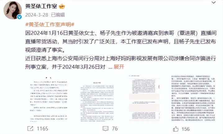 但对此,黄圣依后续也明确表示两人仅是受邀嘉宾,未作出任何保量承诺,已全面履行合约内容,并敦促合作方妥善处理善后事宜。